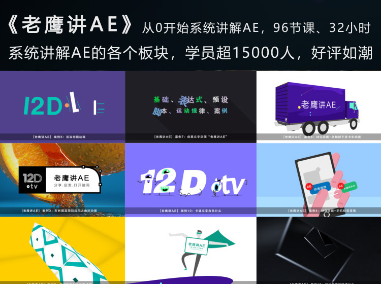 从0开始系统讲AE,96节课、32小时内容,学员超15000人,好评如潮。